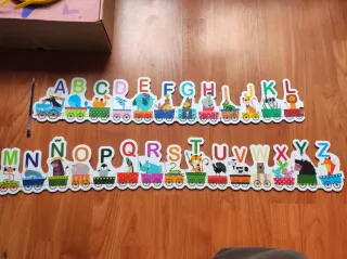 Divertido puzzle del abecedario con letras decoradas con animales y un tren. Incluye un libro de cartón duro. Algunas piezas están dañadas como se muestra en las fotos. - Cada letra representa un animal. - Las letras forman un tren. - Ideal para aprender el abecedario.