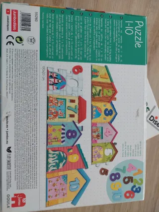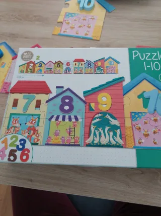 Divertido puzzle de casas con números del 1 al 10. Ideal para aprender jugando. - Incluye piezas con números y dibujos. - Diseño colorido de casas. - Fomenta el aprendizaje numérico.