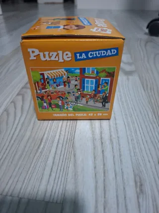 Puzzle infantil con temática de la ciudad. - 24 piezas. - Ilustraciones coloridas de niños, animales y elementos urbanos.