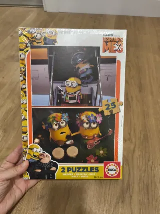 Pack de dos puzzles de la película Gru, mi villano favorito. SIN ESTRENAR. PRECINTADO - Incluye dos puzzles de 25 piezas cada uno. - Personajes de Gru, mi villano favorito. - Fabricados en madera. - Medidas: 26x18 cm.