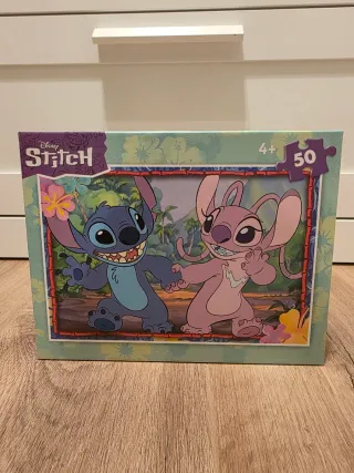 Puzzle de Disney con los personajes de Stitch y Ángel. Ideal para los más pequeños. - 50 piezas. - Personajes: Stitch y Ángel. - Diseño colorido con fondo tropical.