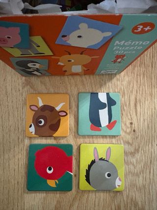 Divertido juego de memoria y puzzle de la marca Djeco, ideal para los más pequeños. - Contiene 30 piezas. - Ilustraciones de animales. - Diseñado para niños a partir de 3 años.