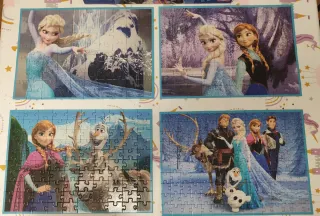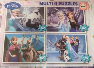Pack de 4 puzzles de la película Disney Frozen. - Puzzle de 50 piezas. - Puzzle de 80 piezas. - Puzzle de 100 piezas. - Puzzle de 150 piezas.