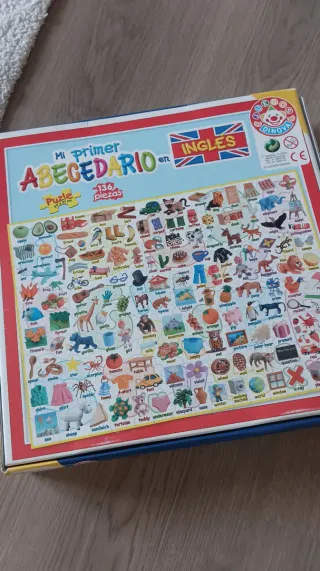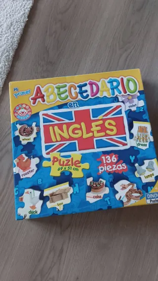 Divertido juego de puzzle Abecedario en Inglés para aprender el idioma. Incluye 136 piezas. - Diseñado por DINOVA. - Medidas del puzzle: 69 x 51 cm. - Ilustraciones de animales y objetos con su nombre en inglés.