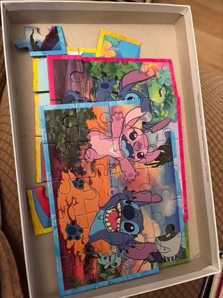 Pack de 4 puzzles de Clementoni con divertidos diseños de Stitch y sus amigos. - Incluye 4 puzzles diferentes. - Diseños de Disney. - Edad recomendada: a partir de 3 años. - Tamaño de cada puzzle: 19x14 cm.
