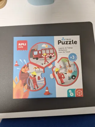Puzzle de la marca APli Kids con temática de bomberos. Ideal para los más pequeños. 3 años - Incluye 3 piezas. - Ilustraciones de bomberos y camión de bomberos. - Diseñado para niños +3 años.