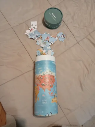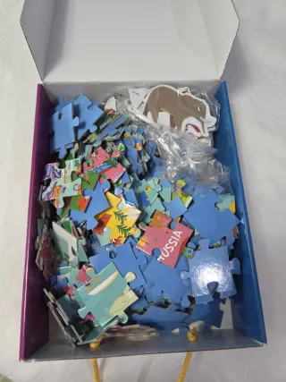 Puzzle de un mapa del mundo, ideal para aprender geografía de forma divertida. El puzzle está sin usar y en perfecto estado. - Diseño colorido del mapa del mundo. - Incluye piezas para armar el puzzle.