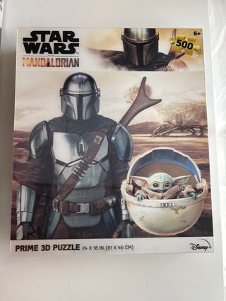 Dos puzzles de Star Wars, temática The Mandalorian. Uno de 1000 piezas y otro de 500 piezas. - Puzzle 1: 1000 piezas. - Puzzle 2: 500 piezas (Prime 3D Puzzle). - Dimensiones Puzzle 2: 61 x 46 cm.