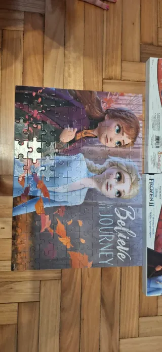 Lote de puzzles de Disney. Pack 4 puzzles 15 euros, por separado 5 euros cada uno. - Puzzle de Trefl de Frozen 3 en 1. - Puzzle de Clementoni de Frozen II (24 piezas). - Puzzle de Clementoni de Frozen II (24 piezas). - Lote de 2 puzzles de Luca de Pixar (48 piezas).