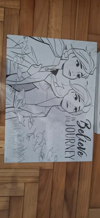 Puzzle de la película Frozen II. - Personajes de la película. - Diseño con hojas de otoño. Una parte del puzzle se puede pintar. La caja tiene una esquina rota