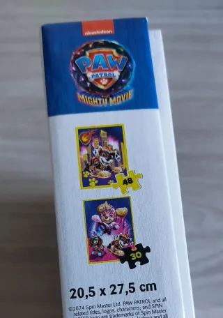 Set de dos puzzles de la Patrulla Canina, con temática Mighty Movie y efecto Neon + Glow in the dark. - Puzzle 1: 48 piezas. - Puzzle 2: 30 piezas. - Edad recomendada: 4+ años.
