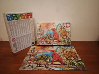 Puzzle de la marca Educa con temática de dinosaurios. - 100 piezas. - Ilustración de dinosaurios en un paisaje prehistórico.