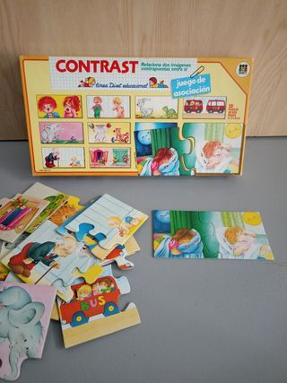 Vendo dos juegos de puzzles educativos para niños. El primero es un domino de alfabeto, ideal para aprender letras. El segundo, un puzzle de contrarios, perfecto para ampliar vocabulario. Ambos están en buen estado y son ideales para el aprendizaje infantil. - Juego de domino de alfabeto. - Puzzle de contrarios con imágenes. - Para niños a partir de 2 años.