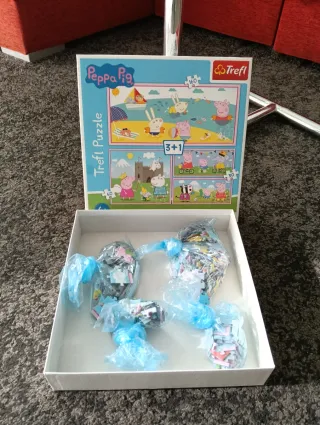 Set de puzzles de Peppa Pig de la marca Trefl. Incluye 4 puzzles con diferentes escenas. Se han montado los puzzles 3 veces.