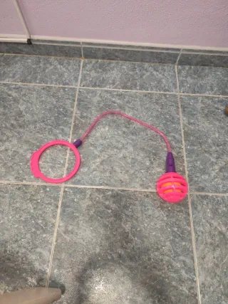 Juguete divertido para saltar con lazo.78 cm. - Aro de plástico rosa. - Cuerda flexible rosa. - Bola con peso en color naranja y rosa.