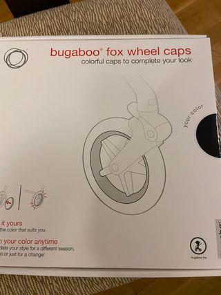 Llantas / tapas para ruedas carro bugaboo. Usadas pero en buen estado. Ningun roto ni raja. Recambio y caja original.