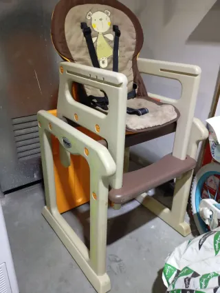 Trona evolutiva de la marca Jane, se convierte en escritorio, buen estado pero con el desgaste obvio del uso.