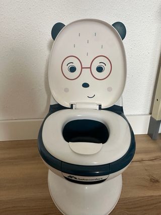 Orinal infantil de la marca Bebeconfort con un divertido diseño de huellas. - Color blanco y azul. - Incluye música o sonidos. - Asiento cómodo para los más pequeños.