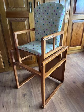Trona de madera convertible en silla y mesa
