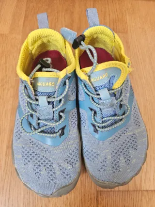 Playeras Saguaro para niño en color azul, barefoot, talla 31. (20x7,5) Pequeño desgaste tela amarilla. - Cierre de cordones elásticos con ajuste. - Suela flexible. - Diseño transpirable.