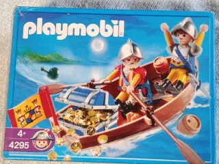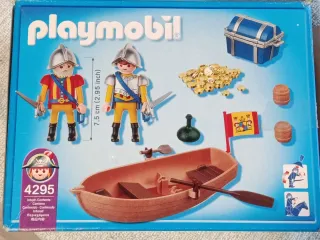 Playmobil 4295 de conquistadores españoles. Caja abierta con el contenido en perfecto estado - Incluye dos figuras de conquistadores. - Barco con cofre del tesoro y monedas. - Bandera española.