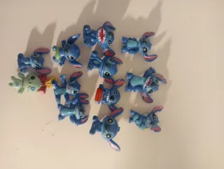 Conjunto de figuras del personaje Stitch. - Figuras de color azul. - Diseños variados del personaje. - Incluye accesorios. - Medidas entre 2 y 3 cm alto. - Material de pvc