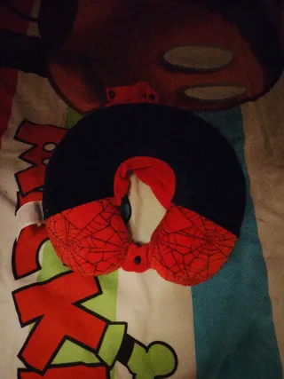 Almohada suave con diseño de Spiderman. - Tejido de felpa. - Color rojo y negro.