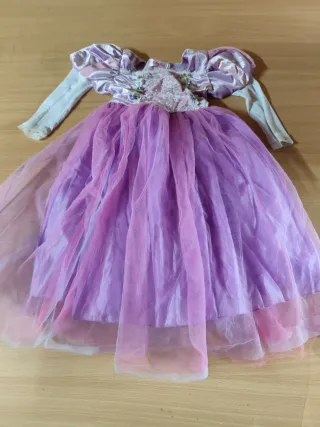 Disfraz inspirado en la princesa Rapunzel, ideal para fiestas o eventos. - Vestido largo con detalles. - Talla 110