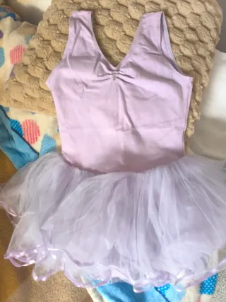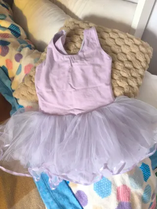 Precioso tutú de ballet para niña en color lila. Ideal para clases o actuaciones. - Cuerpo del body de tela elástica. - Falda de tul con varias capas. - Detalle de pedrería en el escote.