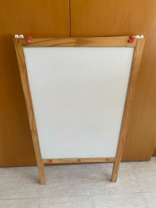 Pizarra infantil de madera de IKEA, ideal para que los más pequeños den rienda suelta a su creatividad. - Estructura de madera. - Superficie blanca para escribir o dibujar.