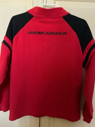 Polar de manga larga para niño con cierre de cremallera. - Diseño bicolor en rojo y negro. - Logo de Under Armour en el pecho. - Bolsillo tipo canguro. - Puños y cuello con detalle de franjas. - Talla YXL (12-14 años)