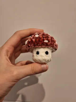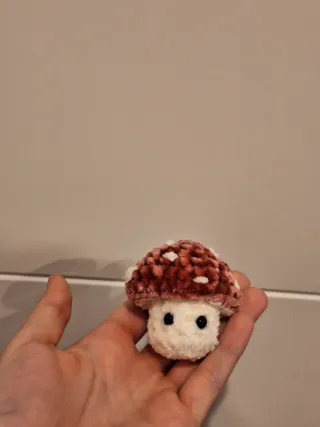 No comprar este anuncio porfavor, si estáis interesados escribidme (DM) 💖 Divertida mini seta extensible tejida a mano a ganchillo.🧶 Se hacen bajo pedido: - Color rojo y blanco, con ojos de seguridad - Material: Velvet yarn 100% polyester - Precio unidad: 4€ 💸 - Tiempo de espera: 1-2 días ⏳️