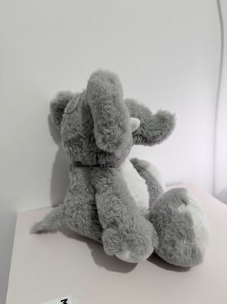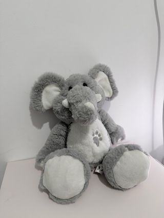 Adorable peluche de elefante de color gris, con un tacto muy suave y agradable. - Material: Felpa. - Color: Gris y blanco. - Diseño: Elefante con huella en el pecho.