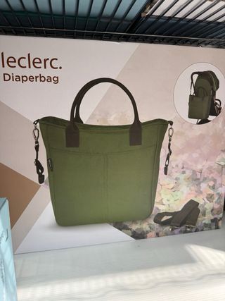 Bolso para carro de bebé de la marca Leclerc en color verde y beige. Se encuentra en perfecto estado. - Diseño moderno y funcional. - Incluye asas de mano y correa para colgar. - Compartimentos interiores para organización.