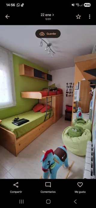 Se vende habitación infantil completa, ideal para optimizar el espacio. - Escalera de acceso a cama superior. - Estantería superior. - Armario integrado. - Armario Se tiene que desmontar