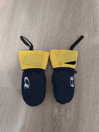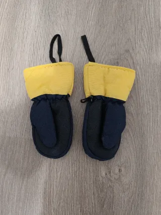 Manoplas de nieve para niños, talla 3. Perfectas para mantener las manos calientes en la montaña. - Color azul marino y amarillo. - Cierre de velcro. - Cordón ajustable.