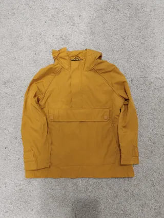 Chubasquero para niño en color mostaza. Con capucha y bolsillo frontal.