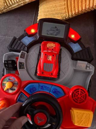 Volante interactivo de Cars, con el personaje Rayo McQueen. - Volante rojo con detalles de carreras. - Pantalla con gráficos. - Botones de colores y sonidos.