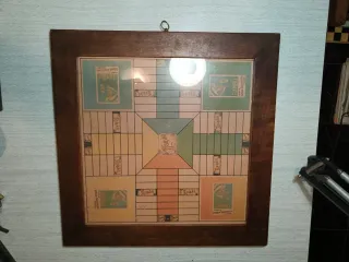 Tablero antiguo de parchís publicitario de la marca de papel de fumar Bambú. Enmarcado en madera. 50*50*2cm.