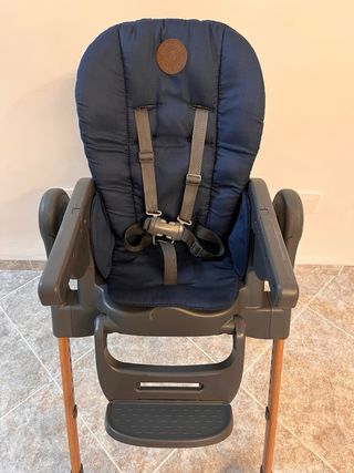 Trona de la marca Maxi-Cosi, modelo Evolución. Diseñada para adaptarse a las necesidades cambiantes del bebé. - Asiento acolchado. - Arnés de seguridad de 5 puntos. - Reposapiés. - Estructura robusta.