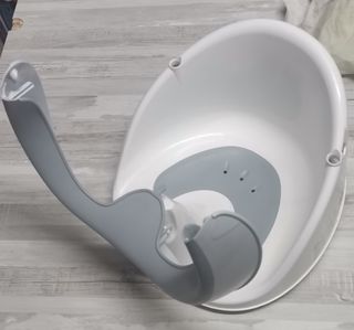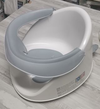 Sillita de baño para bebés con un diseño seguro y práctico. - Cuenta con ventosas para una fijación firme. - Fabricada en plástico blanco y gris., soy de rosas Gerona no envío si x Vinted