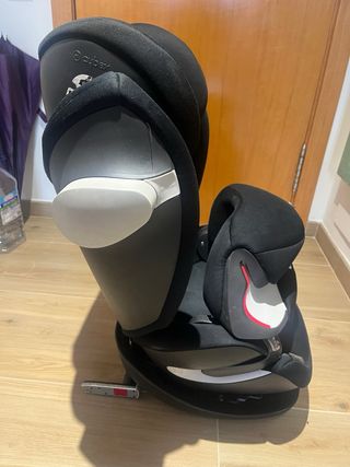 Silla de coche Cybex en color negro. Diseñada para la seguridad y comodidad. Desde los 9kg hasta los 36kg, grupo 1,2 y 3, con isofix. - Reposacabezas ajustable para que pueda dormir cómodamente. - Diseño ergonómico muy seguro. - Marca Cybex visible.