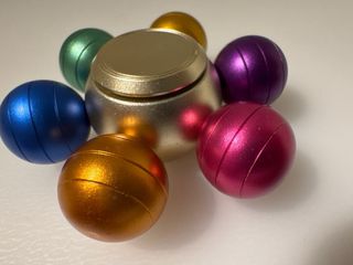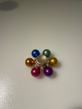 Spinner - Diseño con seis esferas de colores - Esferas de color: azul, verde, dorado, naranja, rosa y morado - Rodamiento central plateado