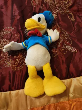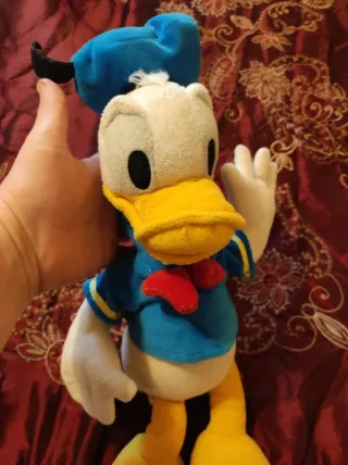 Se vende Peluche del Pato Donald. Buen estado general. Personaje clásico de Disney. Es suave y perfecto para coleccionar o regalar. Medidas de alto 41 cm. - Diseño del Pato Donald. - Ropa azul con lazo rojo. - Gorro azul.