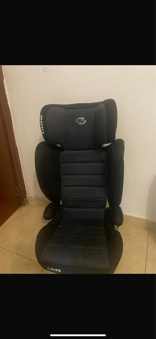 Silla de coche para niños con diseño ergonómico y acolchado. - Homologación I-SIZE. - Reposacabezas ajustable. - Laterales reforzados para mayor protección. - Tejido negro transpirable.