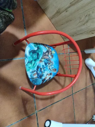 Silla infantil con diseño de Los Vengadores. Ideal para los más pequeños. - Estructura de metal roja. - Asiento con estampado de superhéroes.