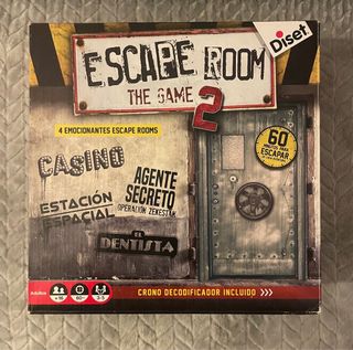 Juego de mesa Escape Room The Game 2 de Diset. Incluye 4 emocionantes escape rooms. El juego está abierto pero nunca ha sido jugado, está para estrenar. Incluye: - Crono decodificador (con pilas) - Decodificador de pistas - 16 llaves - Cartas de pistas - 4 aventuras diferentes