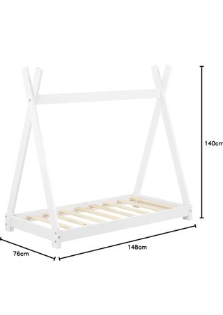 Cama infantil con diseño de tipi, ideal para habitaciones de niños. Fabricada en madera blanca. - Medidas: 148cm (largo) x 76cm (ancho) x 140cm (alto). - Estructura de madera blanca. - Si te interesa escribeme y te paso foto original se entrga colchon