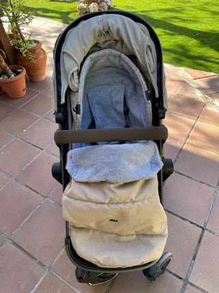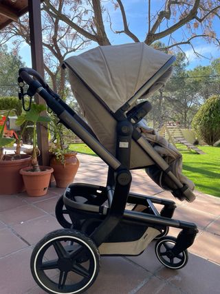 Carrito Joolz Day+ (sillita paseo + capazo) en color taupé, en excelente estado. Se incluyen 6 accesorios: pantalla protectora sol, bandeja para alimentos, portavasos, mosquitera, protección lluvia y saco invierno. - Chasis robusto y diseño elegante. - Capota extensible para mayor protección. - Cesta de compras espaciosa.