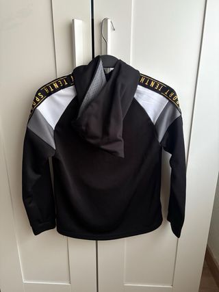 Chándal de la marca Tenth para niño, talla 8 años. Diseño moderno y deportivo. - Cremallera frontal. - Bolsillo tipo canguro. - Logo de la marca en la manga y en el pecho. - Detalle de texto en las mangas.